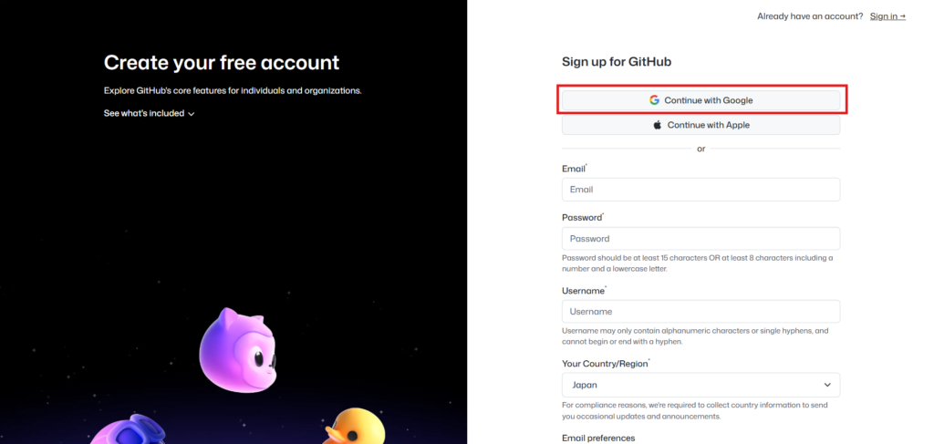 GitHubアカウントを作成して、サインインする手順を解説します。