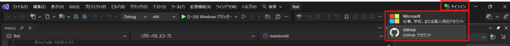 Visual Studio 2026 でGitHubにサインインする