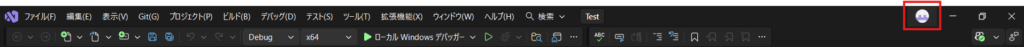 Visual Studio 2026に戻って、右上のサインインのところにアカウントのマークが表示されていればOKです!