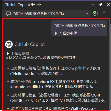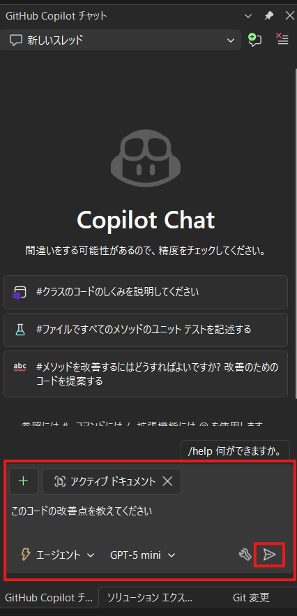 試しにGitHub Copilotに質問してみます。