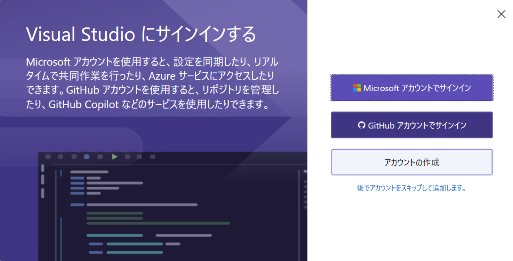 すでにアカウントがある方はサインインしておくと今後設定の引継ぎなどができます。