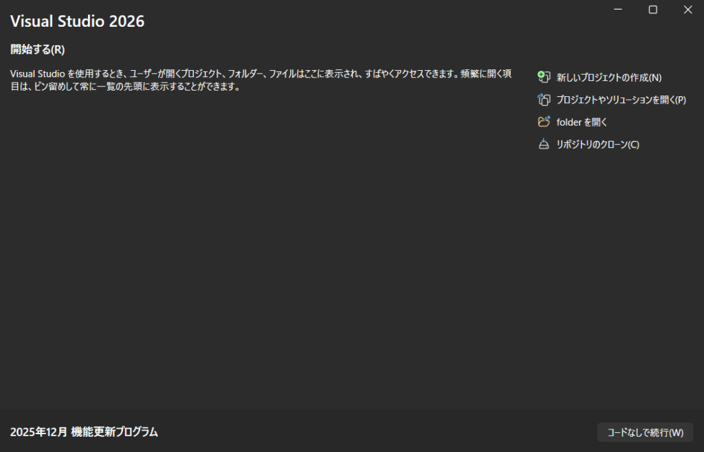 Visual Studio 2026は2025年11月にリリースされたMicrosoftの統合開発環境(IDE)です。個人開発なら無料で使うことができ、AI搭載なども話題になっています。