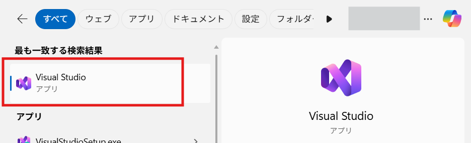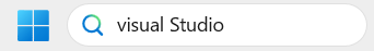 デスクトップの「タスクバー」の検索ウィンドウに”visual Studio”と入力します。