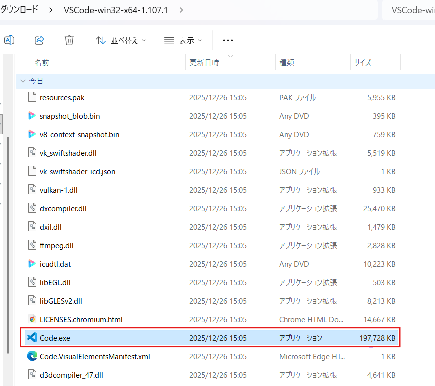 Code.exeをダブルクリックすると、VS Codeが立ち上がります。