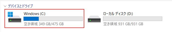 - 「デバイスとドライブ」に表示されているCドライブを確認する
